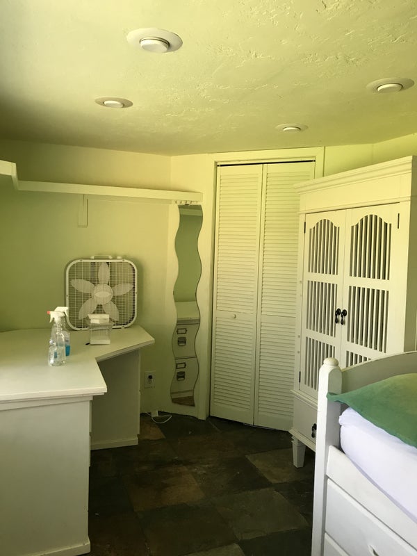 Private small but nice furnished room in the backyard. You come into the house for the bathroom, kitchen, common areas. Artist vibe and very respectful roommates. Room is cheap for a serious full time student between 20 and 25.