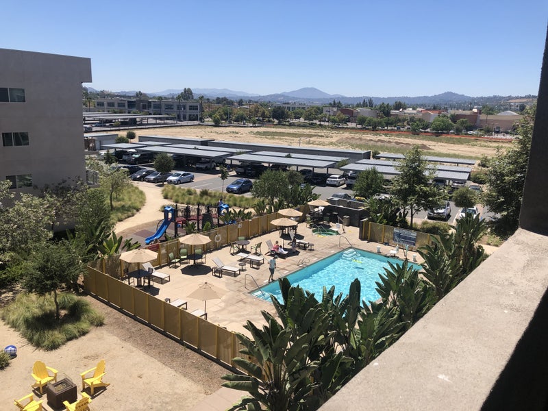 Unit located in the new 'Parc One' complex in Santee, CA. Fourth floor unit with pool view. Place is furnished except for the bedroom. Washer/Dryer inside. Private bathroom. Rent due on the first - so move in fee will be a prorated amount depending on day of move in. Utilities are split.