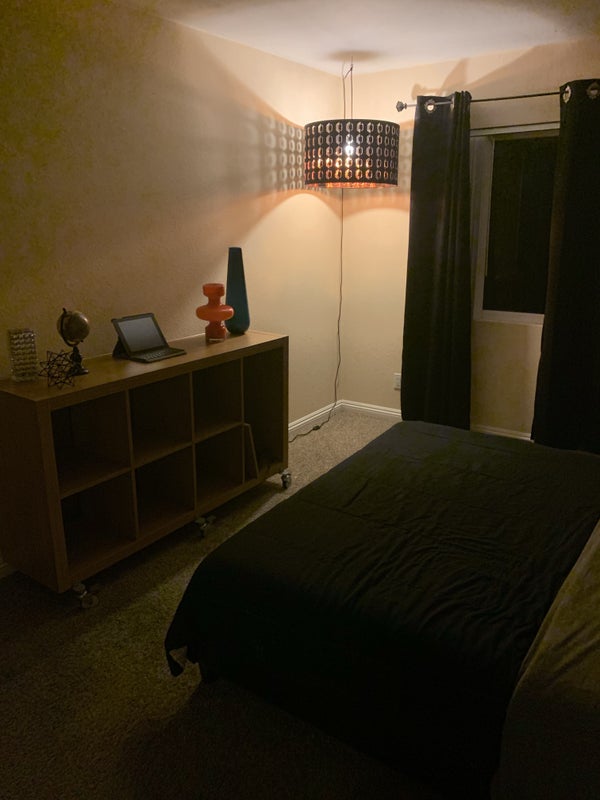 This room would be perfect for a traveling nurse, student, or anyone looking for a short term lease. The lease is month to month. If you're looking to live in a laid back atmosphere with 2 cool guys with cute dogs in a great friendly neighborhood, this is for you! If you're looking for a party house, click the back arrow button to the left now. NO Couples will be considered!