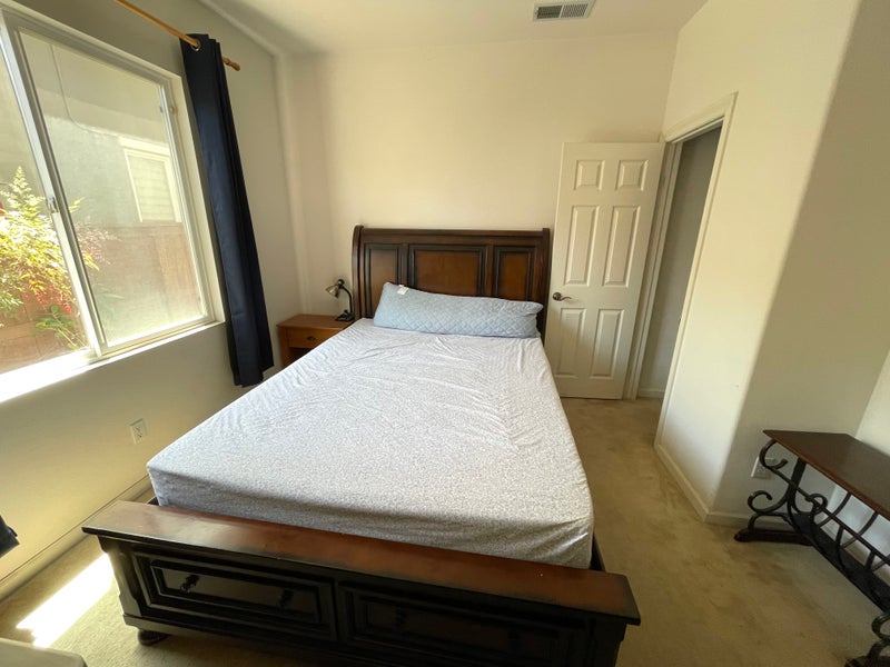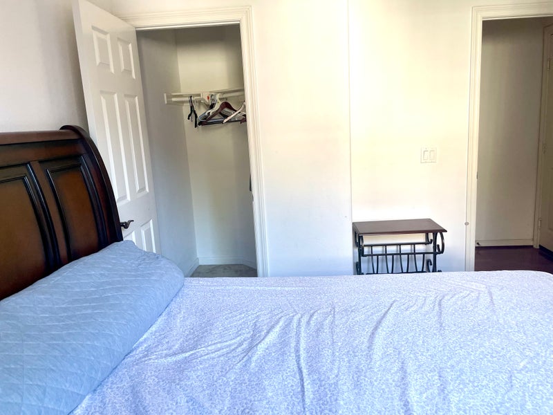 A fully-furnished room with walk-in closet is the only downstairs bedroom in a quiet section of the 4 bedroom/3 bathroom house with backyard. Right next is your private bathroom. There are shared living room, dining room and kitchen. The house is in a beautiful quiet neighborhood in Torrey Highland with easy access for highway 56, which quickly connects to I-5, I-805 and I-15. Ample free off-street parking.