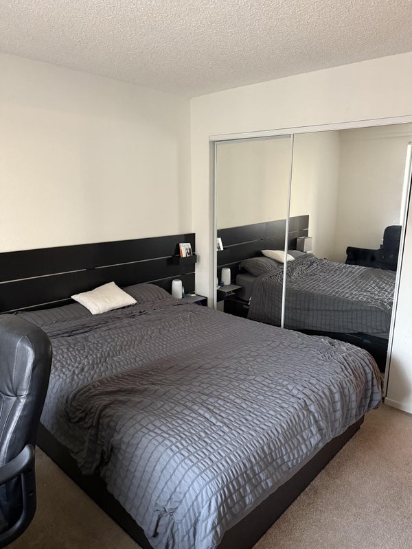 TL; DR: Bedroom with private bathroom $1615 (long term lease preferred) looking to fill the place around May 10 (or a few days later). We would prefer to have a grad student, postdoc or working professional to occupy the space. The room can come with a desk and chair and a queen size bed (IKEA, 1 year old) with mattress.