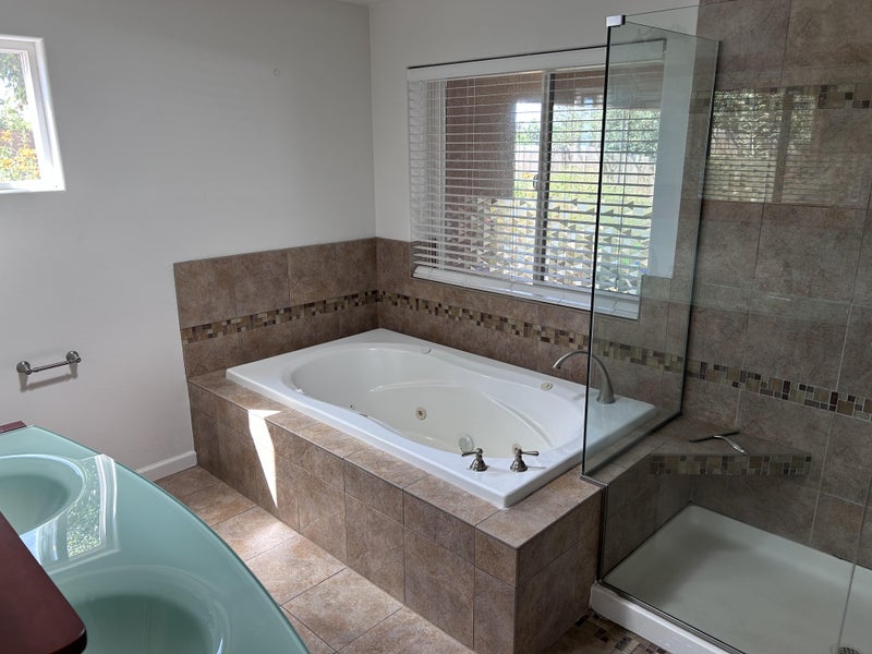 Master Bedroom: carpeted, lot of natural light, two mirrored closets, large private bathroom with jacuzzi tub, two sinks, and big shower. Room has private door to backyard garden. Master Bedroom includes another room, an attached office, that could be used as a guest room when you have a visitor.