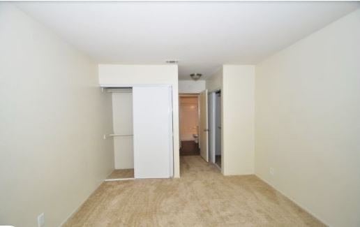 Private bedroom available in a spacious 2-bedroom, 2-bath apartment. The room is located on the opposite end of the apartment from the master bedroom, offering excellent privacy. It includes its own bathroom, a great view of the pool, and double doors that bring in plenty of natural light.