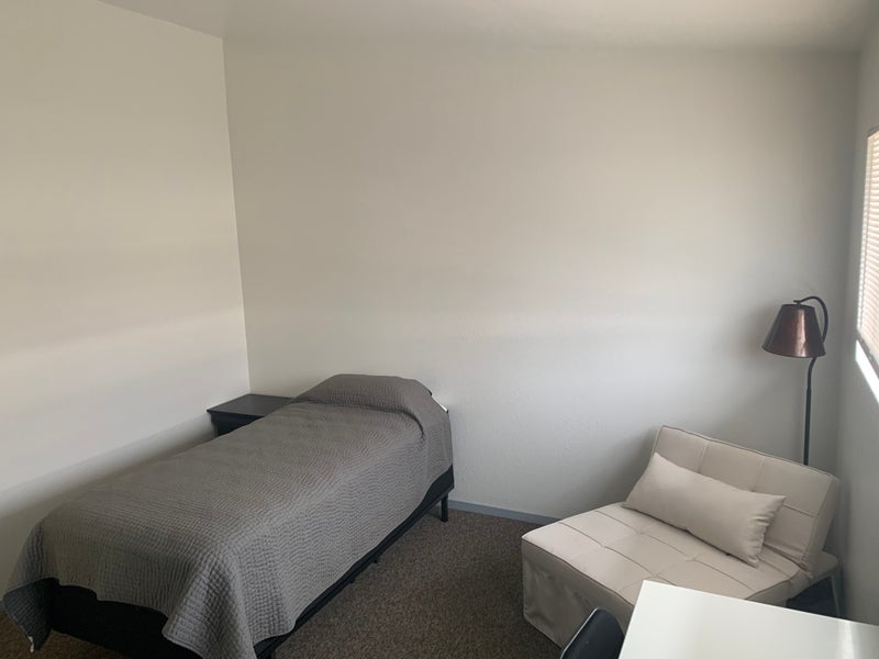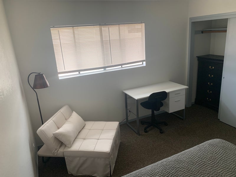 The room is furnished for one person and can be set up in a few different ways depending on what you need. There’s flexibility between a King bed or Twin XL, along with options for a desk, dressers, and even a small sitting area. It also has blackout shades for comfort. The goal is to make the space feel like home, so I’m happy to adjust the setup to fit your lifestyle.