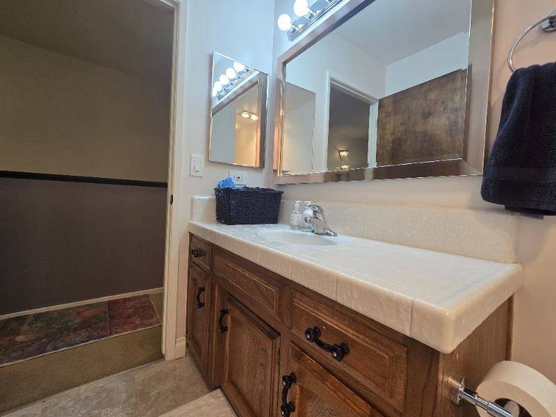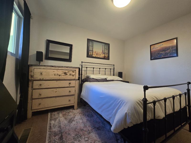 Full bathroom shared between two of the renters only, So whomever is in this bedroom and then the other renter. (So, two persons sharing only). Up to three persons max living in this home at all times. Two persons may not share "one room".