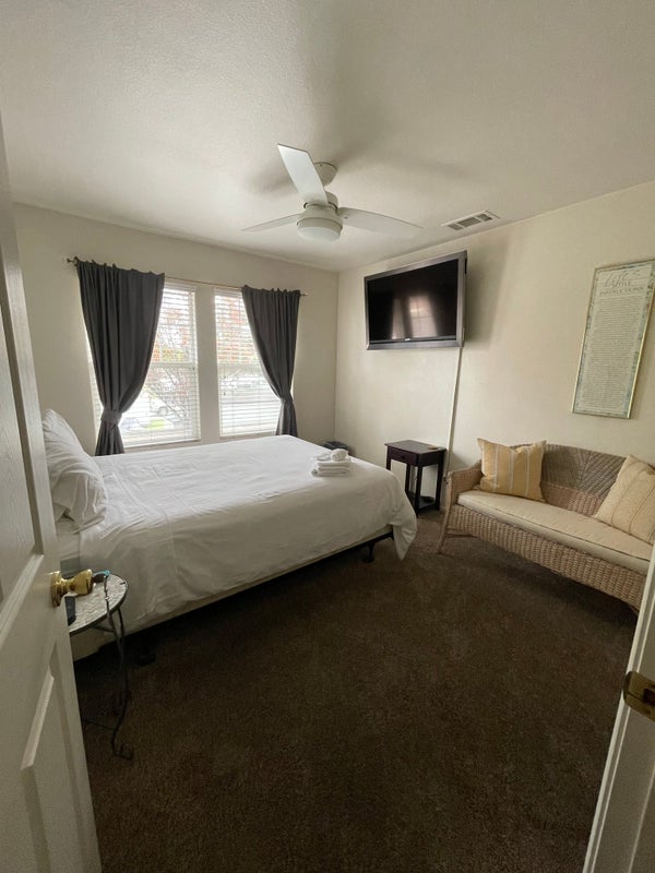 Amenities include: Private rooms with queensize beds, weekly housekeeping, premium linens, plush towels, robes, and slippers. Large in room TV with multiple paid channels. Herbal steam, red light therapy sauna, serene yoga studio, workout area with treadmill. Secluded outdoor lounge with sitting areas, fire pit and peaceful water fountain. Gourmet kitchen Complimentary parking always available Peaceful, wellmaintained environment