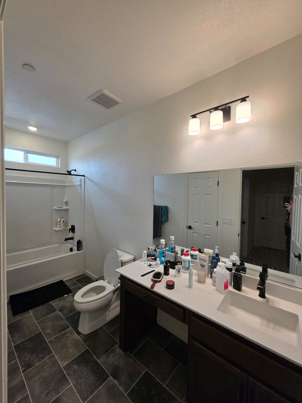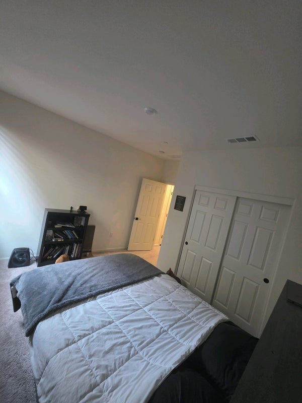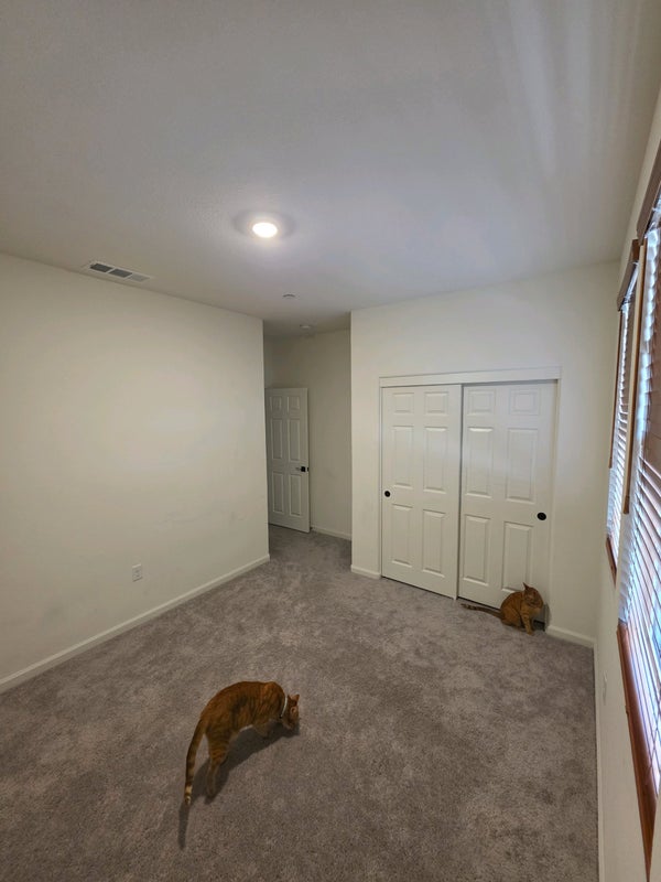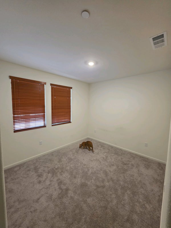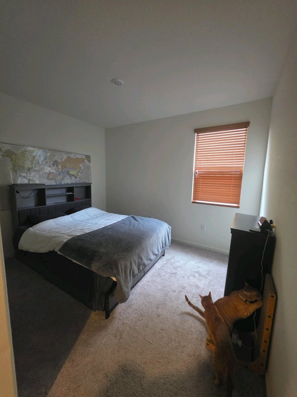 Two average sized rooms available, one furnished and one unfurnished. Both have designer wooden blinds, carpet, and a normal closet. Shared areas include the bathroom, living room, kitchen, large covered back patio, and garage. Bus stops are not far, there is a large public park practically across the street, and we are on the edge of the new developments in patterson (it is very quiet). Brand new Whirlpool appliances (washer, dryer, refrigerator, dishwasher, gas stove).