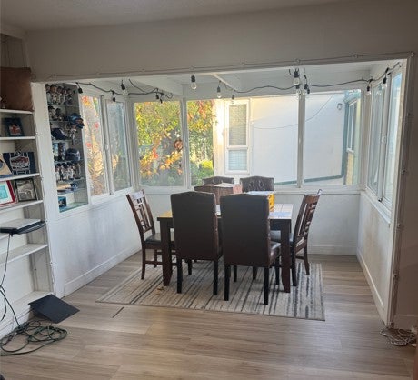 The unit has been tastefully updated with stylish laminate wood flooring throughout, a modernized bathroom, and a bright, airy bedroom. The spacious living room is filled with natural light and features a cozy gas fireplace, creating a warm, welcoming atmosphere. The galley kitchen is perfect for any home chef, offering functionality and charm.