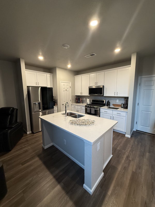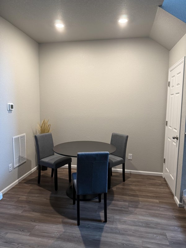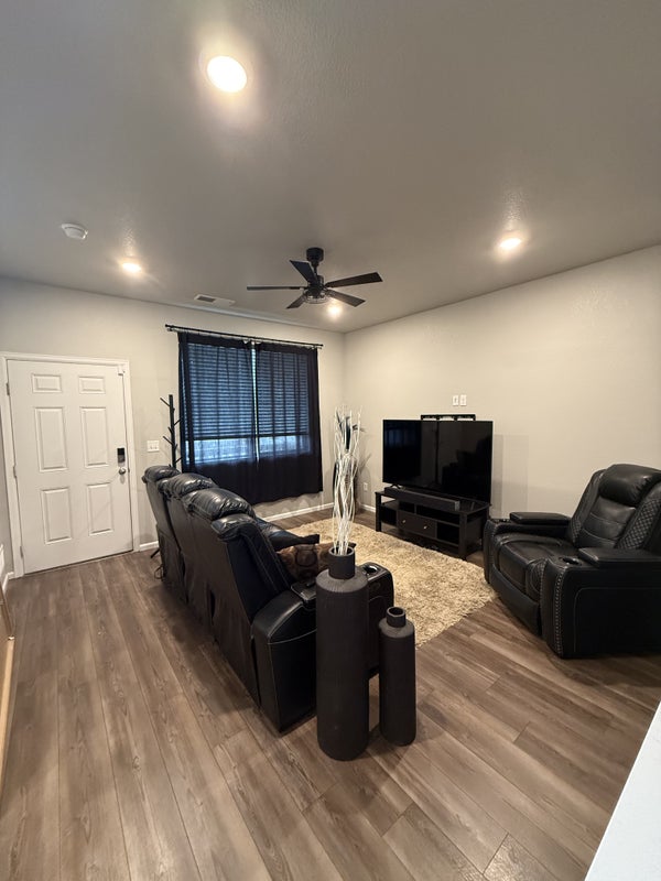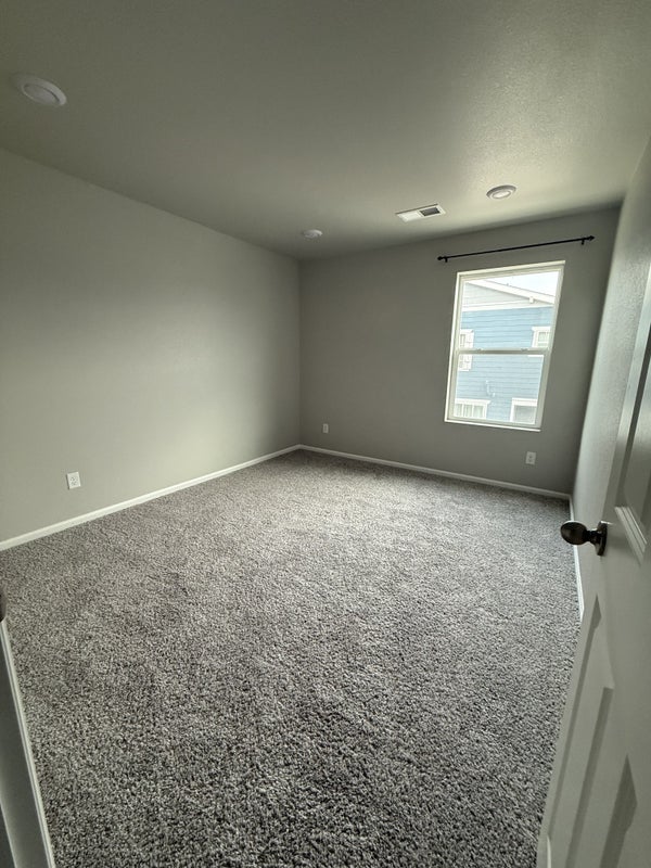 This room is on the second floor and the room is around 121 square feet in size. This is a spacious 3 bedroom and 2 1/2 bath new townhouse. It is 2 stories and has an attached 2 stall garage, available for parking. There is also plenty of street parking as option too. The bedroom is currently unfurnished but can get it furnished if needed. The bedroom is on opposite side of house for privacy and with a good size closet built in the room with new carpet. It has its own private bathroom as well acrosss the hall on same floor. The location is not far the airport, roughly 10 mins or less and 38 min drive to downtown There is also a RTD light rail super close. The property is located in a safe and well kept new development. Pictures are up to date of bedroom.