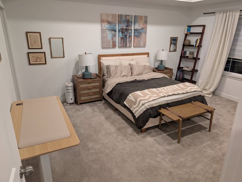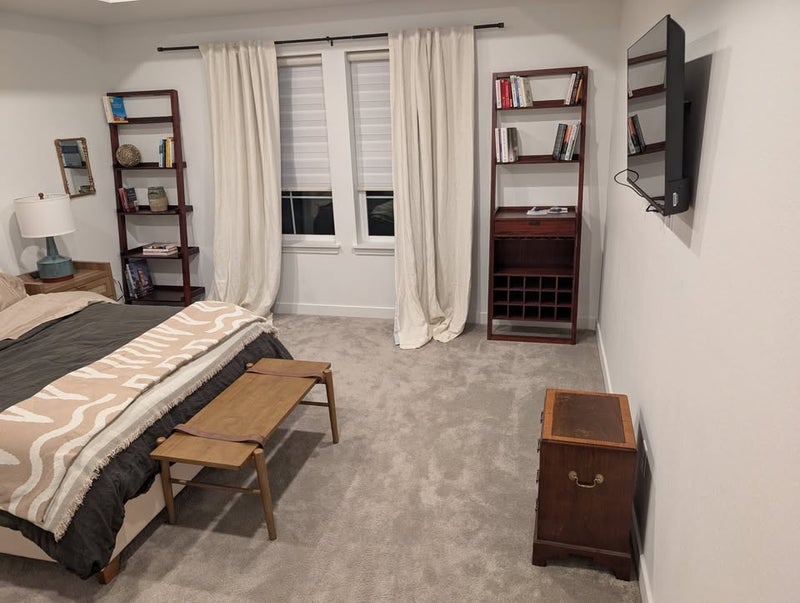 downstairs roommate - female in her 30s, lives in mother-in-law suite, has its own entrance near front door of house downstairs. Also has access to main kitchen/living room but rarely utilizes.