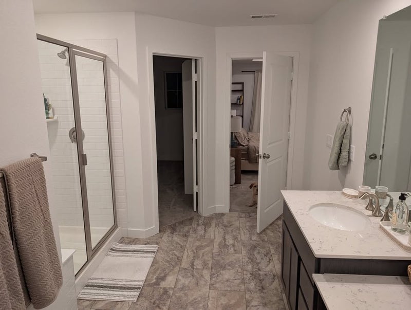 Master Bedroom is ~208sqft (13.4 x16.5 ft) -2 walk-in closets -very large bathroom with double sinks/vanity space, shower