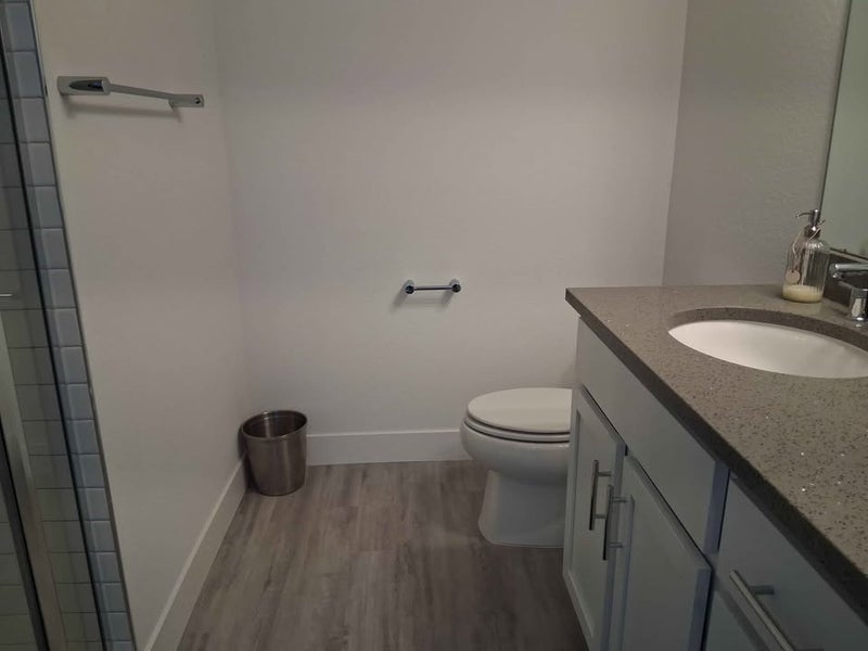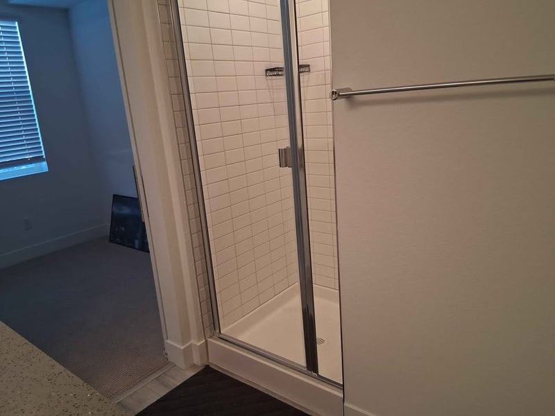 The bathroom is a 3/4 bathroom with a shower, but no tub.