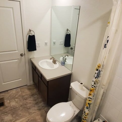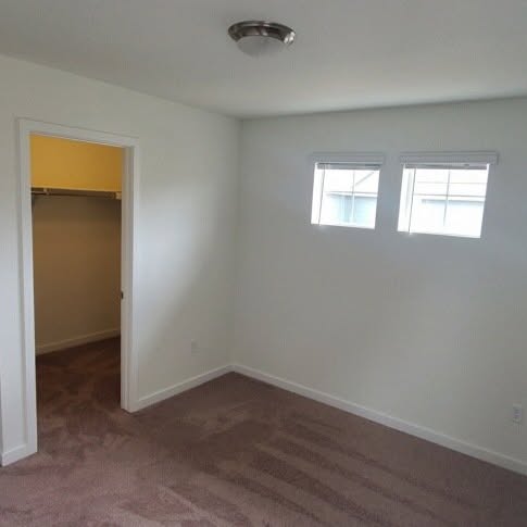Available now: A private, unfurnished [or furnished] bedroom on its own wing, featuring a massive walk-in closet and your own private bathroom.