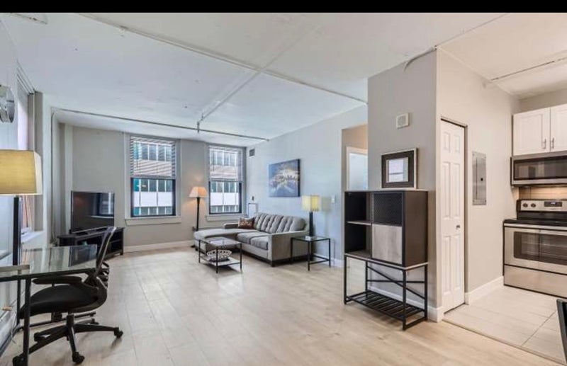 LOCATION, NEWLY RENOVATED & CHIC - this turnkey 1-bed, 1-bath END unit condo in the highly desirable Midland Lofts in the heart of Downtown Denver offers one of the largest 740 SF floor plans