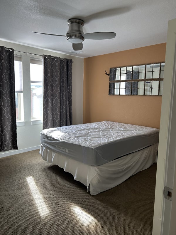 Clean and modern townhome in the convenient and popular area of Central Park Place (old Stapleton). Close to many amenities. Seeking Female roommate only. The bedroom has an attached private full bathroom. The bedroom has a ceiling fan and light. The bedroom is approximately 15 ft by 15ft Privacy shades and curtains, smart tv, side table, dresser and full size new mattress. The townhome is less than 10 years old with tile and granite in the bathrooms and carpet throughout the bedrooms, hard floors on the first floor. There is a third bedroom I use for TV and office. Washer and dryer upstairs with bedrooms. The downstairs has full kitchen and eating area. Street parking available also. I will require first months rent and security deposit. I can also offer meal preparation for an additional fee. Lots of potential for the right person. Pets considered with additional monthly $$. Air purifiers and filtered water. Safe family neighborhood.