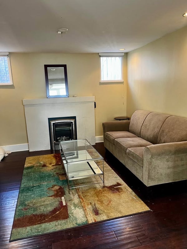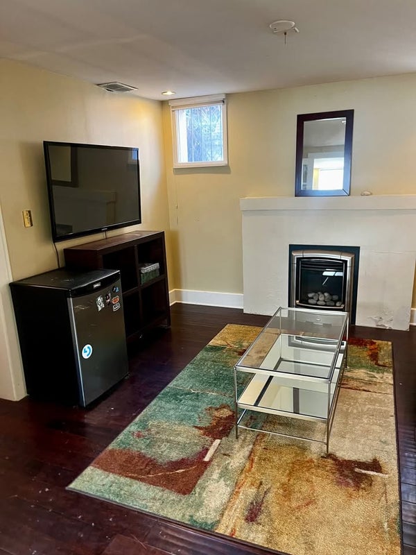 The space for rent is a fully finished basement that includes a private bedroom, full bathroom, and a comfortable living area with a fireplace and extra storage. The living room comes furnished with a couch, coffee table, and a 62" flat-screen TV—yours to use at no extra cost if you’d like. There’s also a shared washer and dryer for your convenience.