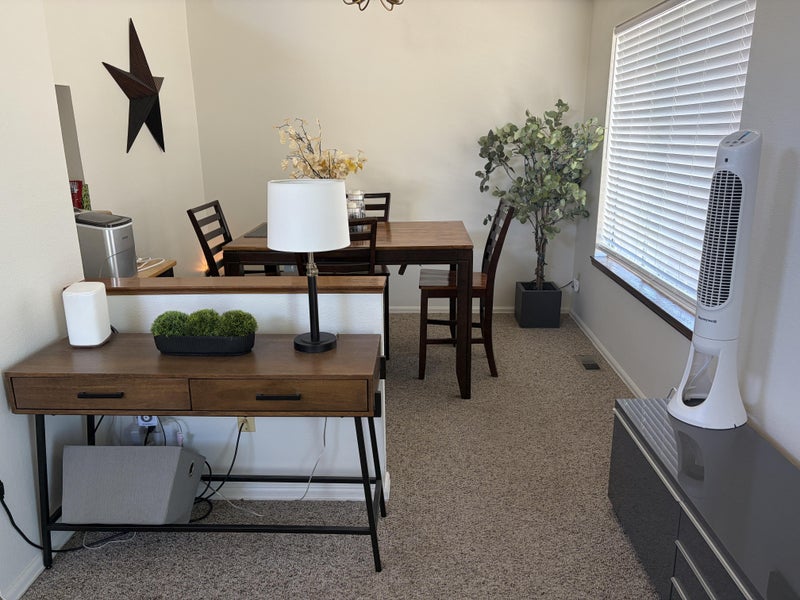 I have a small downstairs bedroom with private bath for rent in my townhouse. Partially furnished bedroom (dresser and night stand and a wall mounted TV, bed is not in the room but the full size frame is available!) Townhouse is fully furnished; washer/dryer; kitchen has all the amenities. Shared garage space available for a mid size vehicle. Non smoker, NO drugs, no cats. Looking for someone who is neat and tidy and will help keep the kitchen clean and items put away. The complex is quiet and close to shopping. I work full time and am currently studying for my A&P License. You can call me during the week after 4:00 pm (that's when I usually get home) & weekends after 9:00 am. I look forward to hearing from you... Thank you!