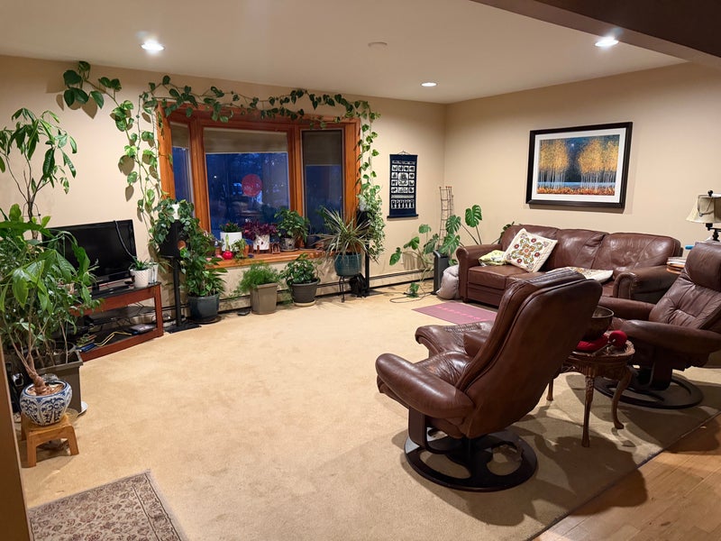 A large basement bedroom with a private bathroom and its own entrance. Shared kitchen and living room upstairs with an extensive open space. Minutes away from light rail/bus station and grocery stores.
