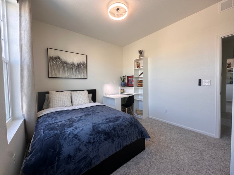 One private room with a shared bathroom at the front of the home