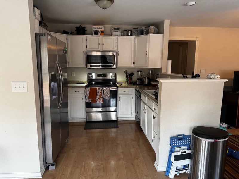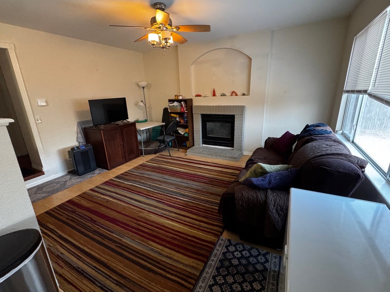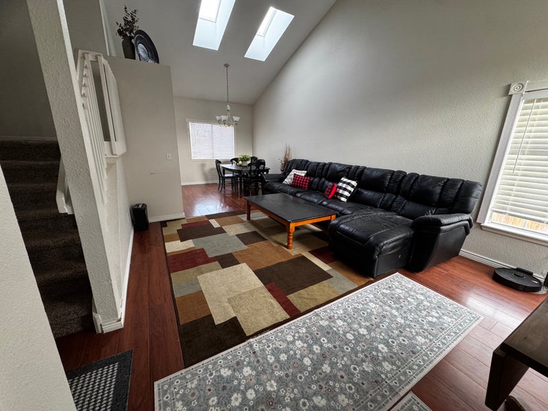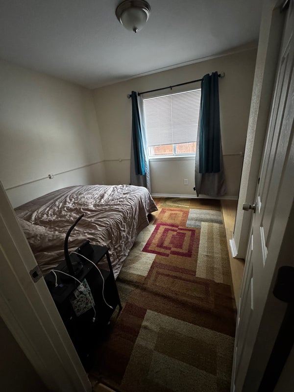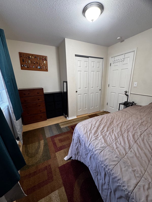 What you’ll get • Private main-floor bedroom (see photos). Can fit a queen size bed. • Your own private bathroom • Semi-private living area downstairs (you’ll mostly have the smaller living space to yourself — the other two housemates are upstairs and tend to hang up there) • Garage parking spot • Basement storage room (unfinished basement = lots of storage space) • Shared pantry + fridge space • Large backyard + patio space • Quiet, safe neighborhood with friendly neighbors