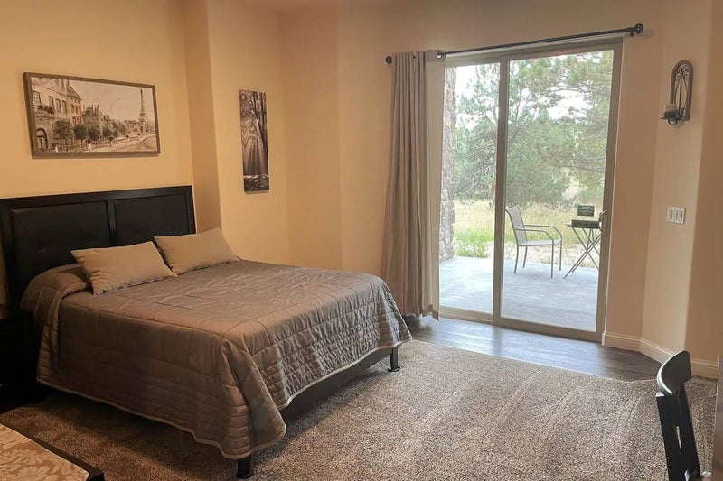 - Access to Laundry units (W/D). - Access to full kitchenette with guest pantry and luxury appliances (i. e. THERMADOR microwave oven) - Roku TV with free channels and media stream (Netflix / Disney+ / Hulu / PrimeVideo / etc.) (accounts required) - FREE bottled water, KEURIG coffee and microwaveable popcorn is provided in kitchenette for our tenants. - Garage Parking (1 space) available (garage door remote control provided). - Property surrounded by trees in total privacy and 2.79 acres of total quietness. - ALL Utilities INCLUDED (Wifi powered by a fast 1GB internet enhanced with an eero Pro 6 mesh system). - UPGRADED water softener/filtered system around the house for perfect showers, awesome skin and completely drinkable. - Easy access to Powers Blvd, HW-83 and Interstate 25. - 22 miles to Peterson AFB. - 10 miles to USAF Academy. - 16 miles to UCCS.