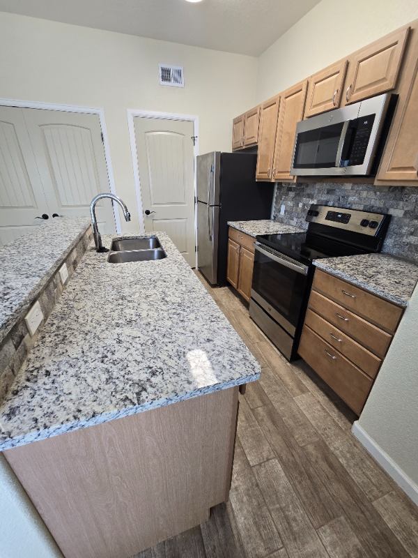 Modern bed bath apartment with walk in closet. Open kitchen and living space with plenty of natural light. Enjoy the sunset from balcony patio. Great location near Old Colorado City. Located on the rd floor. Laundry in unity. Plenty of parking. No smoking. No pets.