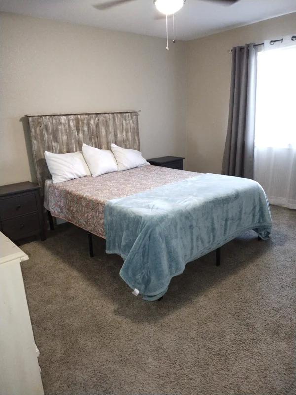 Private upstairs bedroom (’ X ’) with shared bath and other common shared spaces. The home is only nine years old and located approximately six blocks east of downtown Colorado Springs. This is a full custom built home with gourmet kitchen and main level Great room concept as well as a second living area upstairs where the bedrooms are located. Minimum days lease term up to one year. The bedroom is furnished with a queen size mattress, dresser, and two nightstands. Minimum credit score on Trans Union.