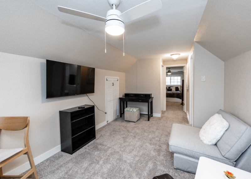 You will be renting a large furnished bedroom and a large furnished living area, as well as your own bath in a bedroom house. There are two other tenants downstairs, and you will be sharing the kitchen and laundry facilities.