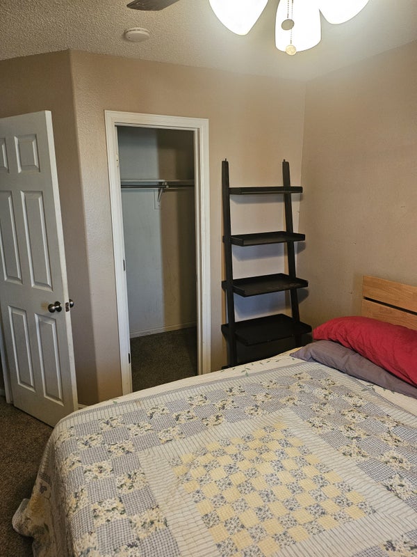 Fully furnished room with king size bed and 65" tv. All streaming services including, Prime, Hulu, Netflix, Paramount+, HBO, and peacock. Must love animals!! We have 2 dogs and 3 cats. Full use of washer and dryer, and kitchen. Private full size refrigerator in garage. Street parking in a quiet neighborhood. 8 min from airport and 10 to 15 min from grocery store and restaurants. Friendly gay couple just looking to rent a room for some extra income.