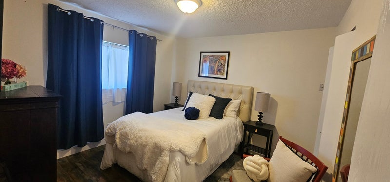 This cozy bedroom is luxurily furnished including a queen bed, nightstands, dresser, desk and a new " tv. You have access to the shared bathrooms and a well equipped kitchen. Eat in the shared dining room and relax with a movie or your sports game on the " tv in the main room.
