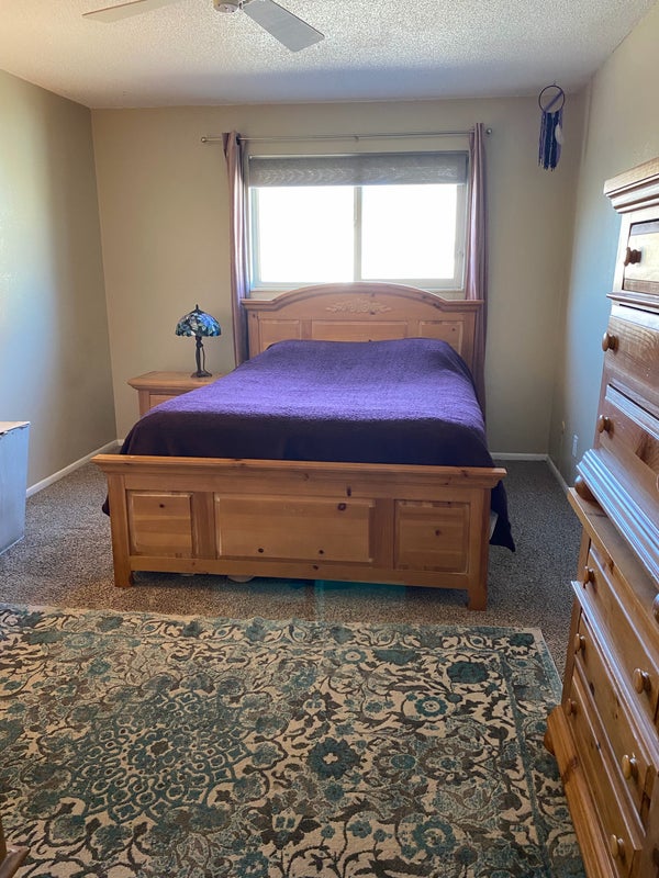 I am a semi-live -in landlord, renting out the master bedroom of my 2BR/1BA condo. The bedroom includes a walk-in closet. The rest of the unit is fully stocked with sheets, towels, dishes, utensils, etc. There is one covered parking spot and plenty of off-street parking.