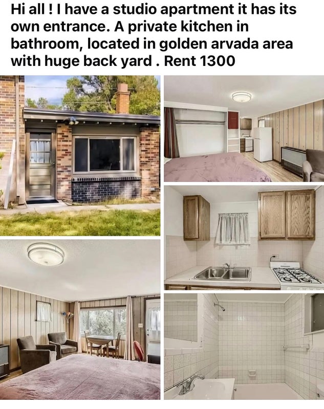 Hi all ! I have a studio apartment it has its own entrance. A private kitchen and bathroom, located in golden arvada area with huge back yard.