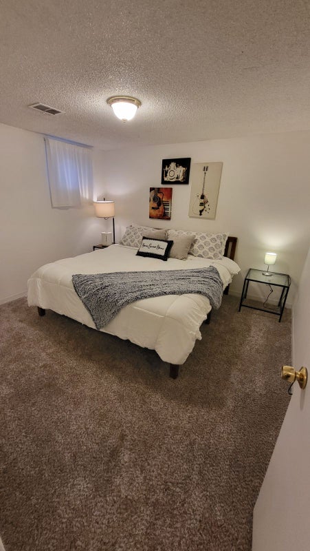 Upstairs, you'll find two spacious primary suites, each with its own private ensuite bathroom and large walk in closets, offering comfort and privacy. The finished basement expands the living space with two additional bedrooms (one currently set up as a home office), a third full bathroom, kitchenette, and an additional living area ideal for guests or shared living arrangements.