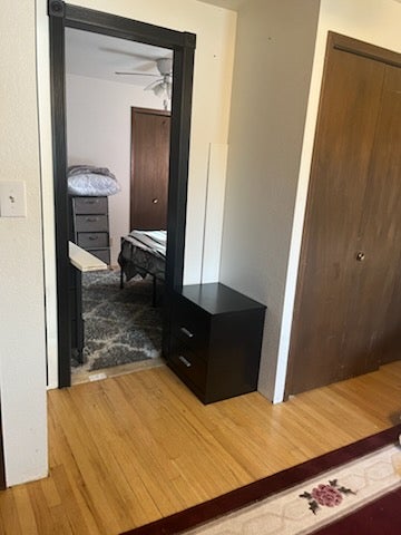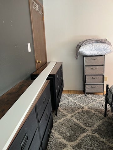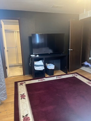 We have a suite room for rent bedroom with new full size bed- separate living room with TV- 2 large closets, dressers- private bathroom- small refrigerator in room. Shared kitchen & laundry facilities, We do own 2 cats, we do smoke. Large backyard