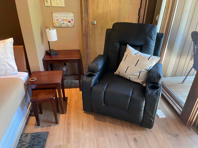 Stunning views from the private balcony of this studio condo. The area has a Murphy bed plus a pullout sofa sleeper, both queen, sleeps . Swivel, rocker, recliner and massage chair. Dining seats . Bamboo sheets. Two large closets and dresser. All new laminate wood flooring, vaulted ceiling, ceiling fan, electric fireplace, inch Smart TV with Direct TV. High Speed Internet. The large bathroom features a showerjacuzzi tub combo. Electric grill. Easy access to the freeway. Service dogs only. Available September ,