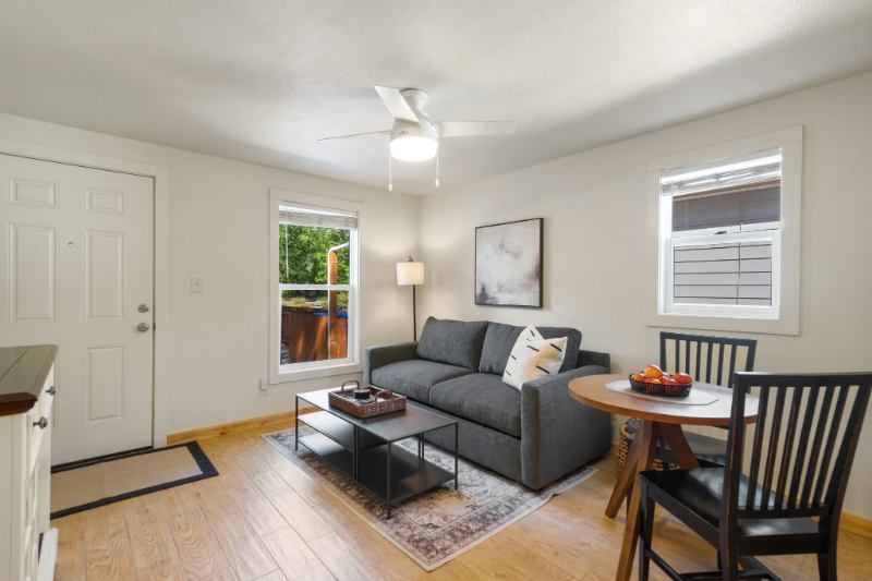 FULLY FURNISHED bed bath apartment, part of a triplex, with wifi, outside storage and fenced area in Loveland. Close to The Foundry, fine dining, theater and boutique shops! Great opportunity for traveling nurses or waiting for a new home to be built. Right across the street from a park and great walking area. Month to month leases available or one year. ALL utilities and wifi included!