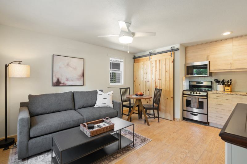 FULLY FURNISHED bed bath apartment, part of a triplex, with wifi, outside storage and fenced area in Loveland. Close to The Foundry, fine dining, theater and boutique shops! Great opportunity for traveling nurses or waiting for a new home to be built. Right across the street from a park and great walking area. Month to month leases available or one year. ALL utilities and wifi included!
