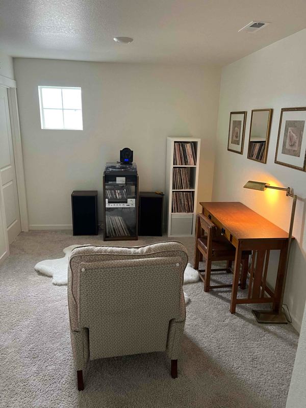 The living spaces share ton of natural light, space to lounge, and with entertainment all around. The kitchen is perfect for anyone who loves to cook (I do!). The living rooms shares a space with a record player and a solid vinyl collection, CDs, and Dvds, with game stations.