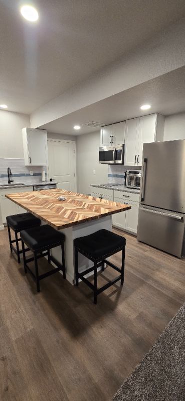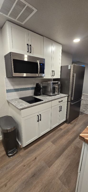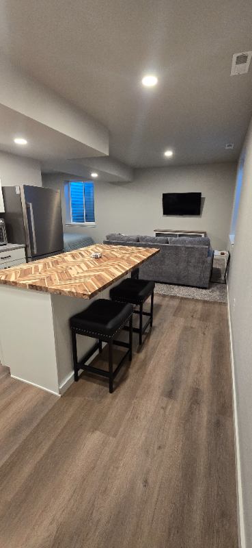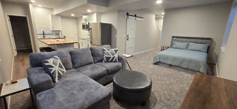 My husband & I are renting out our private SF basement. Shared entrance. About us: We have friendly dog; must be ok with dogs. We work standard MF jobs. We are quite & easy going. Safe and quiet neighborhood. Property Details: Street Parking Only, LR, Kitchenette (w cookware), Laundry Room (W&D), Bedroom (Storage Queen Bed), WI Closet, Bathroom *Mech room is shared with your laundry room, we will need occasional access for Maintenace. Kitchen appliances (all brand new): DW, cooktop, microwave, toaster oven (with multiple features), & fridge. Large outdoor spaces to share include: front & back patio, & firepit area. All utilities included. Roku TV on site, but must use your own Netflix, Disney+, etc. Whole house central system is set year round; we've included an electric fireplace with multiple settings. Carpet & LVP flooring. Windows have blinds. Out of description room, additional details upon request.