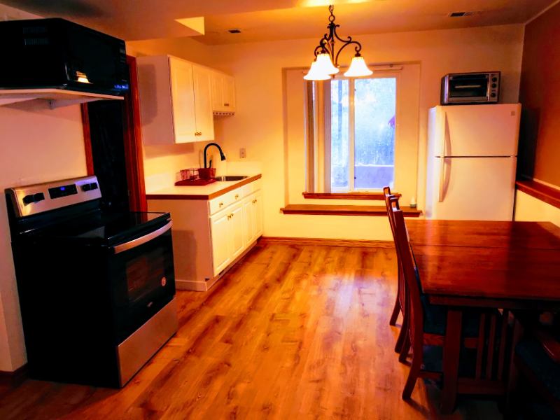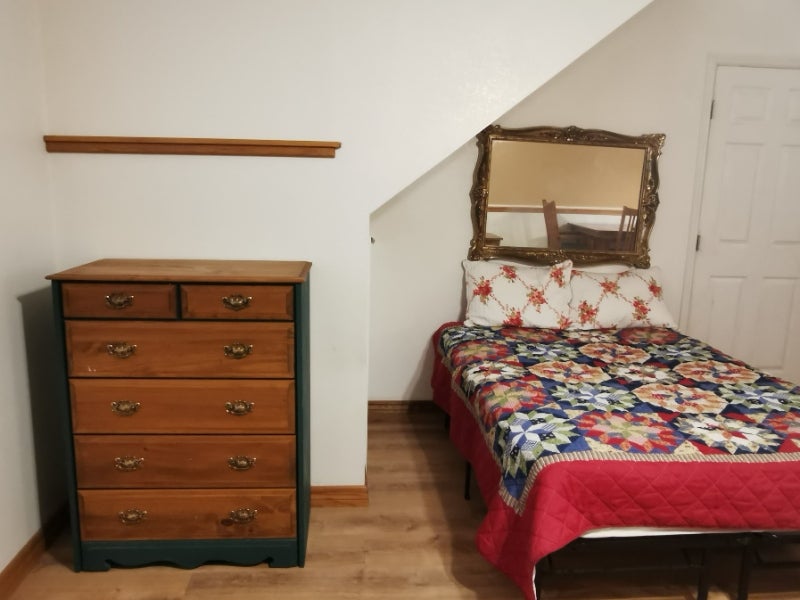 Beautiful studio apartment with covered backyard patio. ALL UTILITIES INCLUDED, except internet. Quiet, SAFE, deadend street in desirable location in NW Greeley. Ground level. Separate, private entrance. Forced air heating and cooling system plus heat pump for total temperature control. Bed (full size), dresser, dining table and chair set, desk and desk chair, bookcase. New full size refrigerator, full size stove, microwave and convection oven. Security alarm system installed. Full bath with tub and shower. Gas fireplace. Bay window seat. Small storage room attached. Access to adjoining utility room with new washer and dryer. Rental includes adjoining private patio, ( sf). Backyard gate opens directly into beautiful peaceful park. Will consider small dog with $ nonrefundable pet cleaning fee. Parking in extralarge driveway. Nonsmokers only. $ refundable damage deposit. No additional fees. Note: Apply Through TURBOTENANT Available Now. Flexible or month lease. .