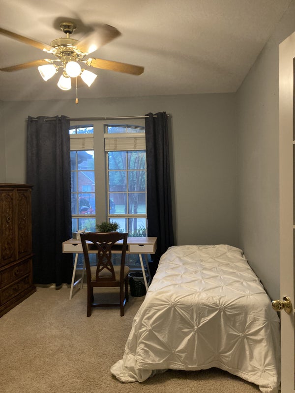 Private family home 2.7 miles to Collin College Campus, Quiet HOA neighborhood, first floor bedroom, half bath beside bedroom, shared shower upstairs, upstairs living room, basic utilities paid,5G wireless internet access, use of kitchen and laundry. City parks w/Fishing pond. Sorry no smoking, no pets. Application and background check required.