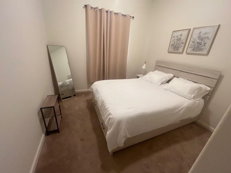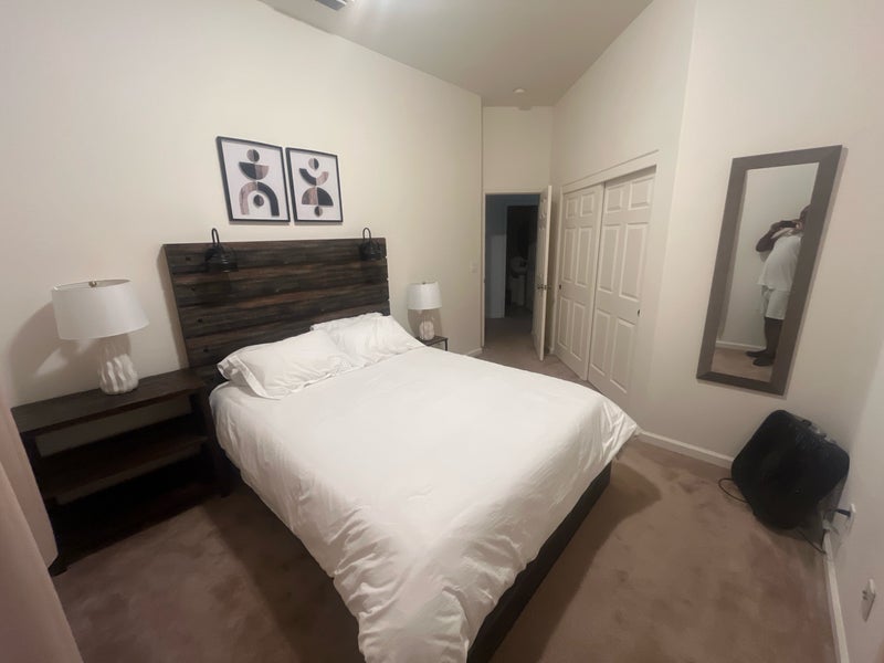 This is a 3 bedroom house and it has a garage and backyard. You could have guests over to visit, but there’s no overnight stay. You can contact me via text or phone call if you’d be interested in coming to see the property.