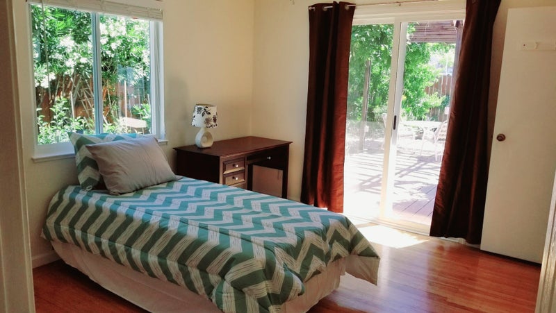 - Private furnished bedroom with private ensuite bathroom, and sliding doors to the backyard in our newly remodeled house located in Pleasant Hill by Sunvalley Mall.
