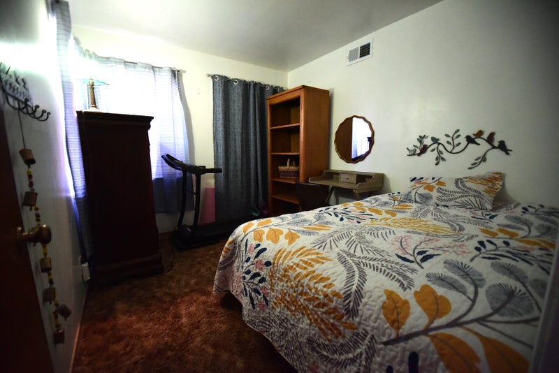 Room 1 – $1,300/month Bedroom with a large built-in closet and a linen closet.