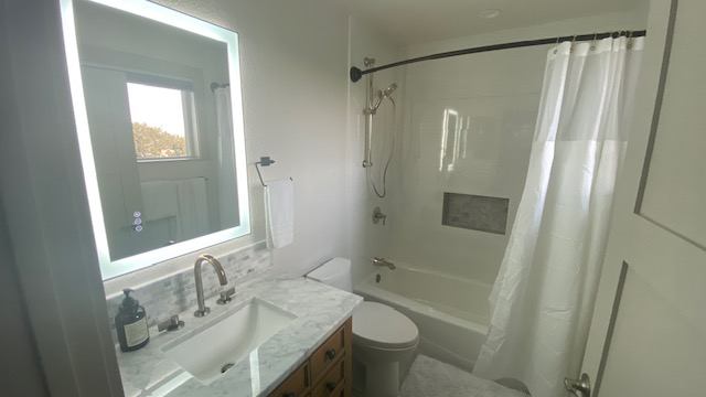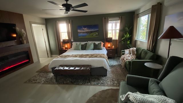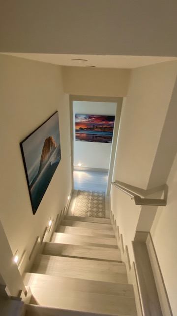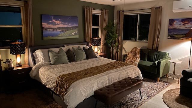 Enjoy your large room with your own private bath with windows looking out to water views. Blackout shades, luxury king size bed with resort mattress from Cariloha Bamboo Company, your own fireplace, couch and recliner as well as plenty of space to store your items! The lighting is set for you to relax and refresh in your private space. Smart TV, WiFi minifridge and all utilities included. This space comes with weekly linen and towel service, two full washers and dryers for your use. Secure code lock on your room door. Hotel accommodations with the feel of home! Beautiful shared full custom kitchen, living room and back deck.