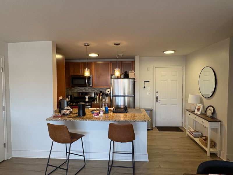 This is a 2 bedroom with 2 bathrooms. The room available is a medium-sized bedroom with its own bathroom. The shared living room is fully furnished. This apartment has an in-unit full sized washer and dryer, secured parking garage, gym, basketball court, and swimming pool. The building is within walking distance of Downtown Stamford!