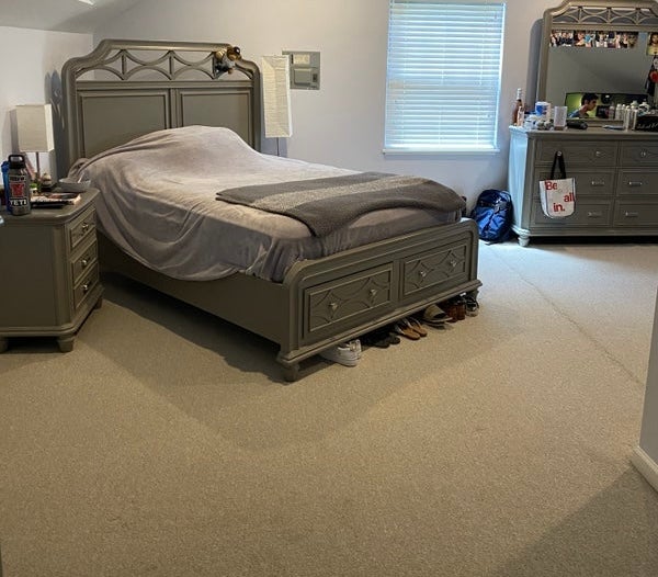 There is currently a queen size bed, dresser, night stand and a desk with chair in the room that can either stay or be moved out.