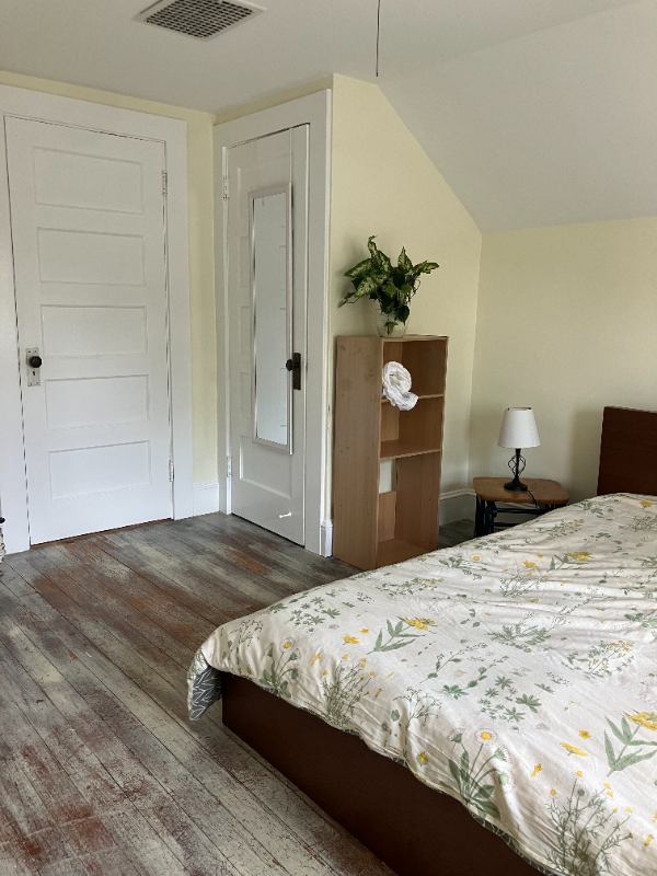 This lovely third floor suite includes a bedroom and newly renovated private bathroom. You will occupy the entire third floor, with a locked door, and private hallway with storage. Entrance is through our home and you will share the kitchen. We are located block from the bus line, and walking distance to the restaurants, shops and movie theater of Blue Back SquareWest Hartford center. Off street parking is available. Lease term to be discussed. Utilities included. Wifi included. Laundry facilities available. We are looking for a quiet, respectful, neat single adult. Students are welcome. We have a sweet golden retriever, so you will need to be comfortable with a dog.
