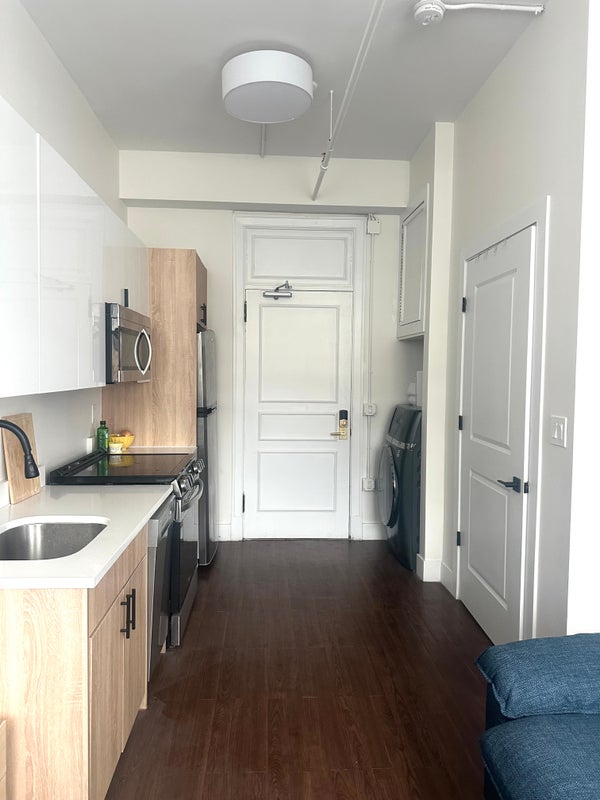 Looking to find someone to takeover my lease in a bright sunny studio in downtown New Haven. I had a job opportunity come up unexpected and I need to move to New York quickly, otherwise I would love to stay. On the 6th floor in a recently renovated historic converted building with an elevator and key code entry, I am the first person to live in this unit. Brand new full size refrigerator, oven, microwave, dishwasher and in-unit combination washer/dryer. Large closet and tall cabinets provide good storage. Some of the studios in this building do not have a closet, so this is a lucky unit that does. Bathroom is a generous size and has a tub and shower. I have a queen size bed and it fits with room for a nice living room area. Central air and heat through a minisplit unit.