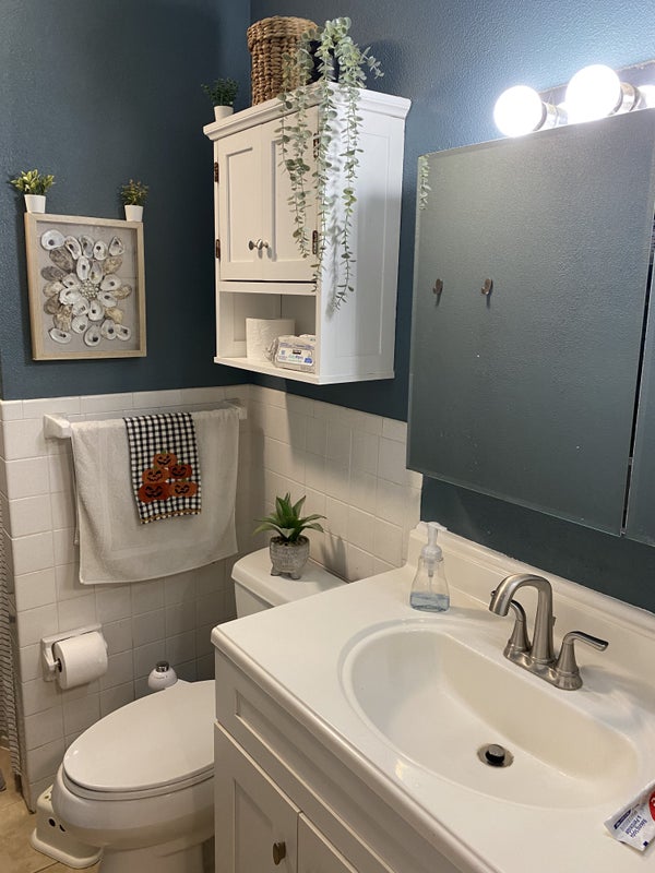 The full bathroom includes a modern shower, single vanity, and cabinet space. The kitchen has countertops, a full-size refrigerator, a stove, pantry cabinets, and essential cooking utensils, making meal preparation easy. The living room is a relaxing space with a couch, TV, side tables, coffee table, and lamps.
